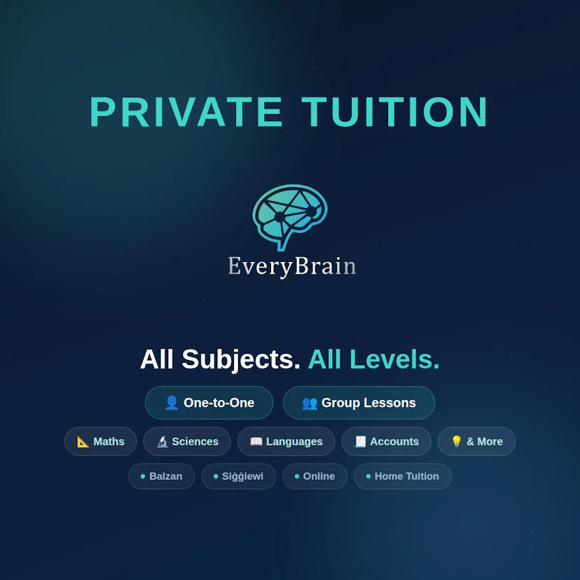 Private lessons of all subjects for all levels. Balzan or Siggiewi or Online